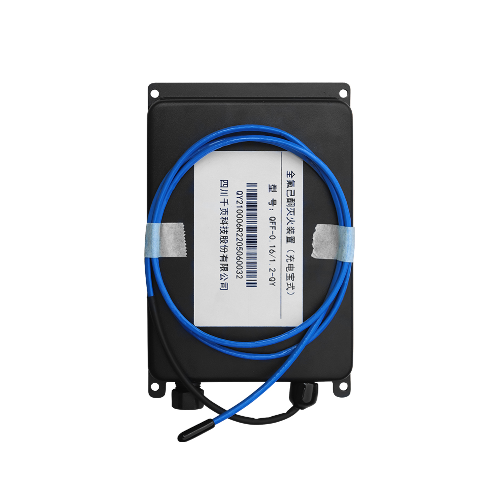 產品描述: QFF-PB01全氟己酮滅火裝置是專門針對配電柜進行自動滅火的一種裝置,裝置由304不銹鋼外殼、產氣組件、噴射組件、熱敏線等組成,內充全氟己酮滅火劑,對電子元器件和其他電器設備及周邊人員無毒無害。